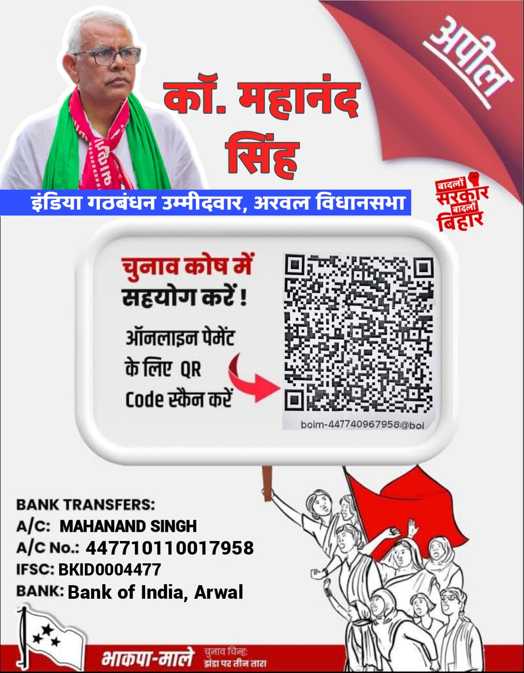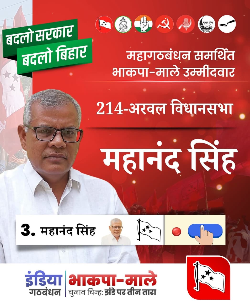 महानंद सिंह ने 2010 के बिहार विधानसभा चुनाव में भी अरवल विधानसभा क्षेत्र से चुनाव लड़ा था , लेकिन भारतीय जनता पार्टी के चितरंजन कुमार से हार गए थे । 2015 के विधानसभा चुनाव में इस क्षेत्र से राष्ट्रीय जनता दल (राजद) के उम्मीदवार रवींद्र कुमार सिंह ने मौजूदा विधायक चितरंजन कुमार को हराया था। 2020 के विधानसभा चुनाव में, भारतीय कम्युनिस्ट पार्टी (मार्क्सवादी-लेनिनवादी) लिबरेशन के साथ गठबंधन में चुनाव लड़ रही राजद ने यह विधानसभा क्षेत्र चितरंजन कुमार को दे दिया। इसलिए, सिंह को उस निर्वाचन क्षेत्र से उम्मीदवार बनाया गया, जहाँ कुशवाहाओं की अच्छी खासी आबादी थी ।